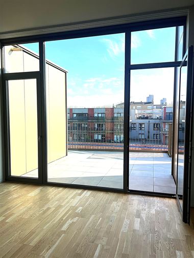 Anderlecht: Donnant face au parc du Scheutbos, Mejama Real Estate vous propose ce splendide penthouse neuf de trois chambres (1ère utilisation) au 4ème étage d'un nouvel immeuble à basse consommation énergétique (PEB = B-) L'appartement est composé d'un beau séjour traversant avec salle-à-manger donnant sur deux grandes terrasses (avant et arrière), une très belle cuisine équipée, deux chambres avec salle-de-douche à l'italienne intégrées, une troisième chambre, une très belle salle-de-bain avec WC, un WC séparé, un coin buanderie,.Niveau du confort: rail pour rideaux et luminaires, fibre internet, ascenseur.L'appartement est loué avec un emplacement de parking et une cave. Charges: 2000€/mois (comprenant le nettoyage des communs, l'ascenseur, et une provision pour le chauffage et l'eau chaude). Libre immédiatement. Pour infos et visites: 0475 56 56 88 info@mejama.be